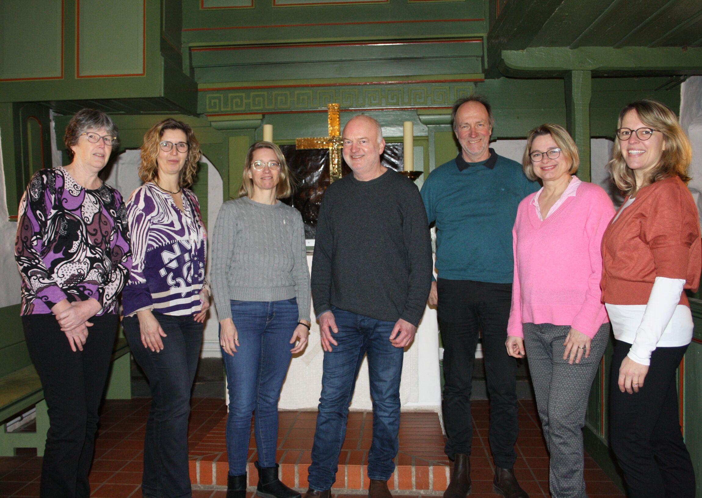 Die Kandidaten und Pastor Thomas Delventhal: (v.l.n.r.) Jutta Joost, Siiri Eggers, Regina Brandes, Thomas, Delventhal, Jürgen Purwins, Christina Beger-Kühner, Janine Baden, es fehlt Kai Korte