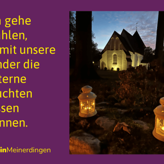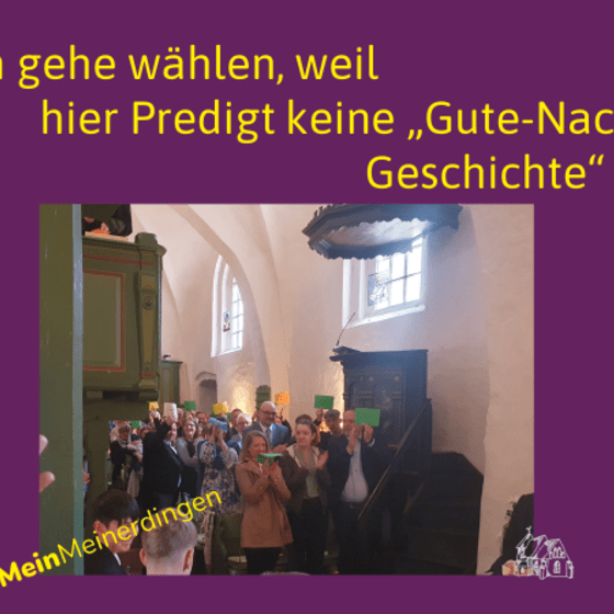 Wenn Sie, liebe Wähler, sich am Sonntag, 10. März auf den Weg machen, um zu wählen, drücken Sie damit aus: „Liebe Kirchenvorsteher, ich finde es toll, dass ihr euch in eurer Freizeit engagiert, dass ihr dafür sorgt, dass die Kirche in einem baulich guten Zustand ist und bleibt, dass die Senioren besucht werden, dass die Kinder und Jugendlichen auf Freizeit fahren können, dass wir lebendige Chöre in der Gemeinde haben. Ich finde es toll, dass ihr euch dafür engagiert, dass Menschen aller Generationen sich im Gottesdienst und auf Gemeindeveranstaltungen treffen, feiern und austauschen können, dass unser Friedhof ein Ort der Begegnung und des Lebens ist. Ihr investiert viel Arbeit und Zeit und Herzblut für die Gemeinde und für die Kirche. Und das möchte ich anerkennen und wertschätzen. Deshalb komme ich zur Wahl.“