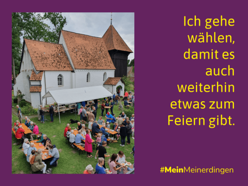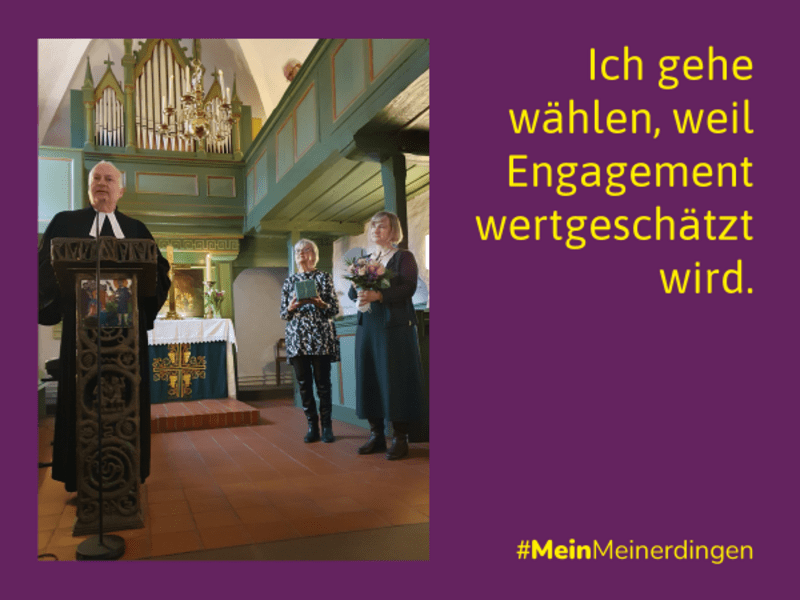 „Von allein bewegt sich gar nichts. Du brauchst einen engagierten Pastor und Kirchenvorstand, um ein lebendiges Meinerdingen zu schaffen. Und dann gehören natürlich die vielen Ehrenamtlichen dazu, die Meinerdingen zu etwas Besonderem machen. Das alles zusammen ist eine runde Sache. Ich hoffe, dass wird so bleiben.“