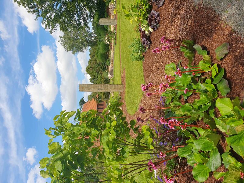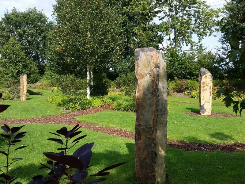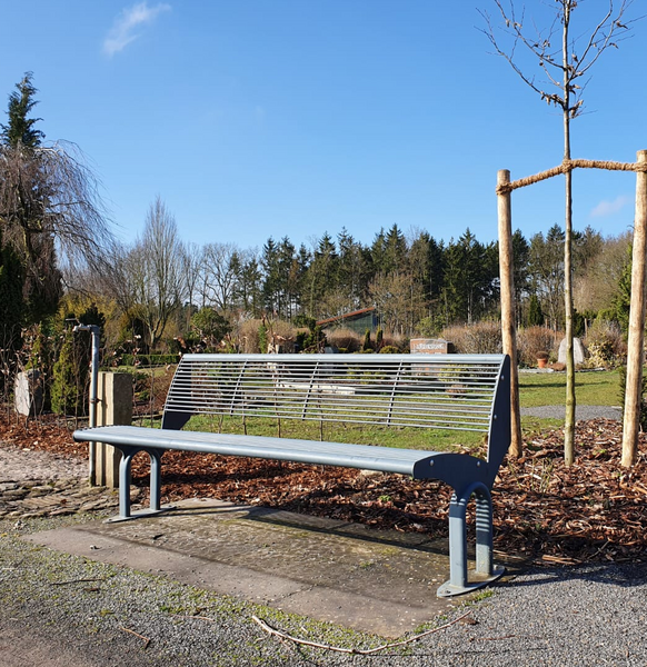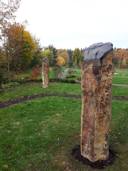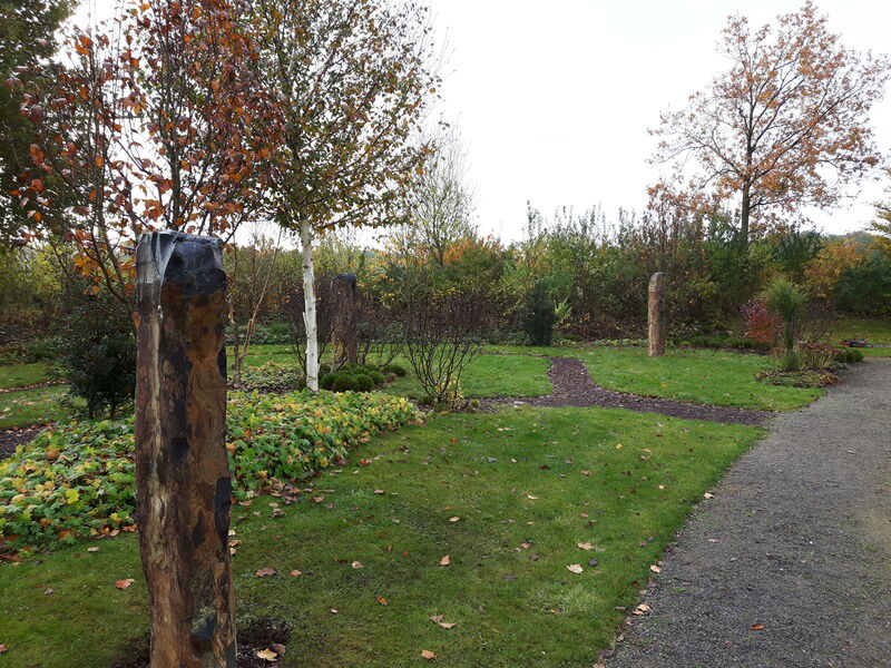 Da im ersten Abschnitt des Friedparks die Grabstätten schon fast vollständig vergeben wurden, wurde es notwendig, den nächsten Abschnitt für die Belegung vorzubereiten. Zur Aufnahme der Gedenktafeln in Bronze wurden in diesem Bereich drei schlanke Basaltsäulen aufgestellt. Im nächsten Schritt werden um die Säulen Ablageflächen für Blumenschmuck angelegt.