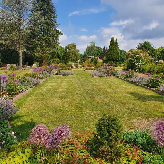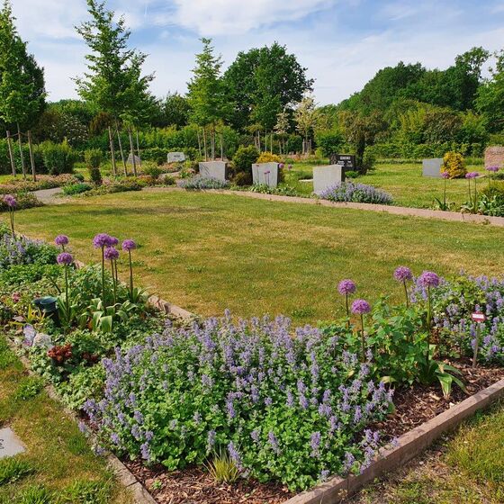 Rasengräber im Schmetterlingsgarten sind pflegefreie Grabstätten in besonderer Lage. Es gibt Reihengräber (Einzelgräber) oder Partnergrabstätten mit einer oder zwei Grabstellen. Das Grabzeichen ist enweder ein