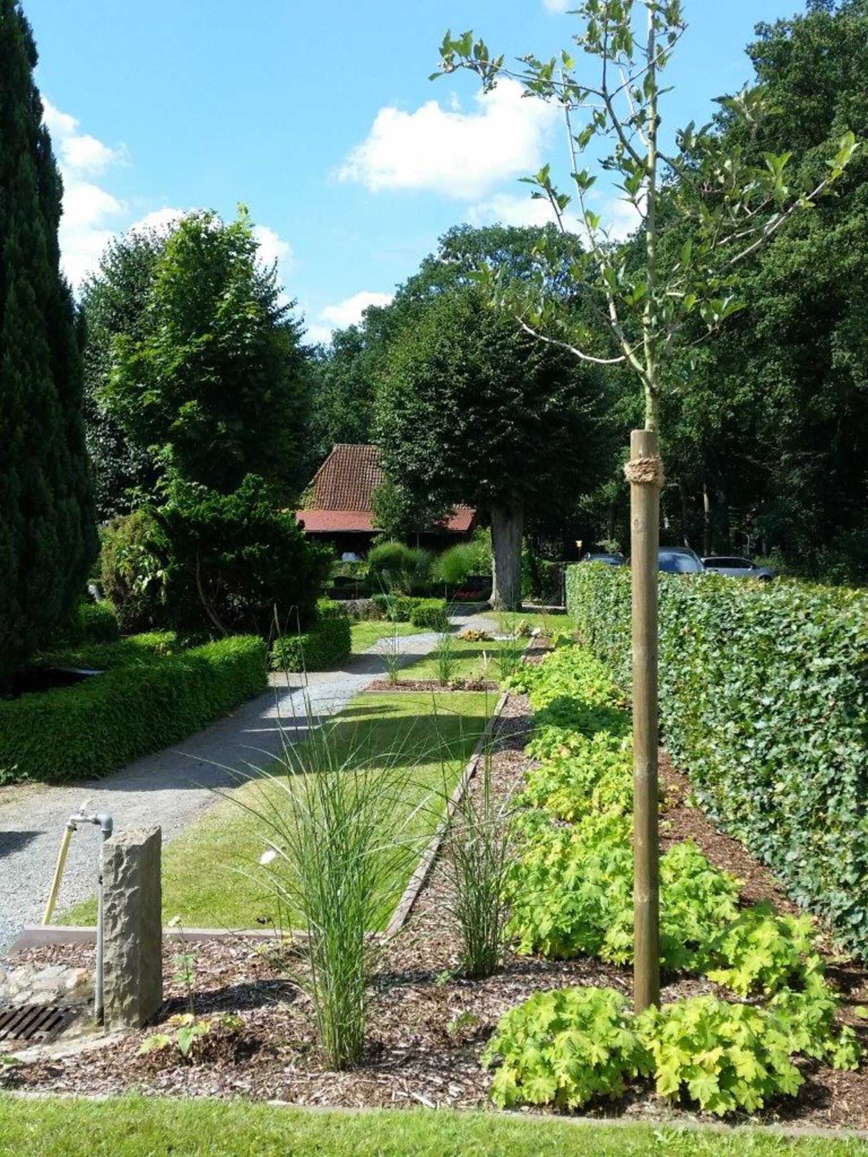 Als Abstellfläche für kleinen Grabschmuck kann die Mulch- bzw. Beetfläche genutzt werden.